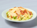 Σαλάτα με μαρούλι, ντομάτα σε κύβους, σπανάκι, φιλέτο κοτόπουλο, φλοίδες παρμεζάνας & BBQ sauce 7.50 € -