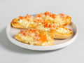 Με ντομάτα τριμμένη, φέτα σε κύβους, ελιές, ρίγανη, ελαιόλαδο, πιπέρι & παρμεζάνα 7.50 € -