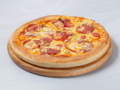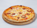 Με ροζέ σάλτσα, ζαμπόν, μπέικον, μανιτάρια, πιπεριά & παρμεζάνα 8.30 € -