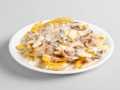 Με κοτόπουλο, μανιτάρια, κρέμα γάλακτος & παρμεζάνα 7.50 € -